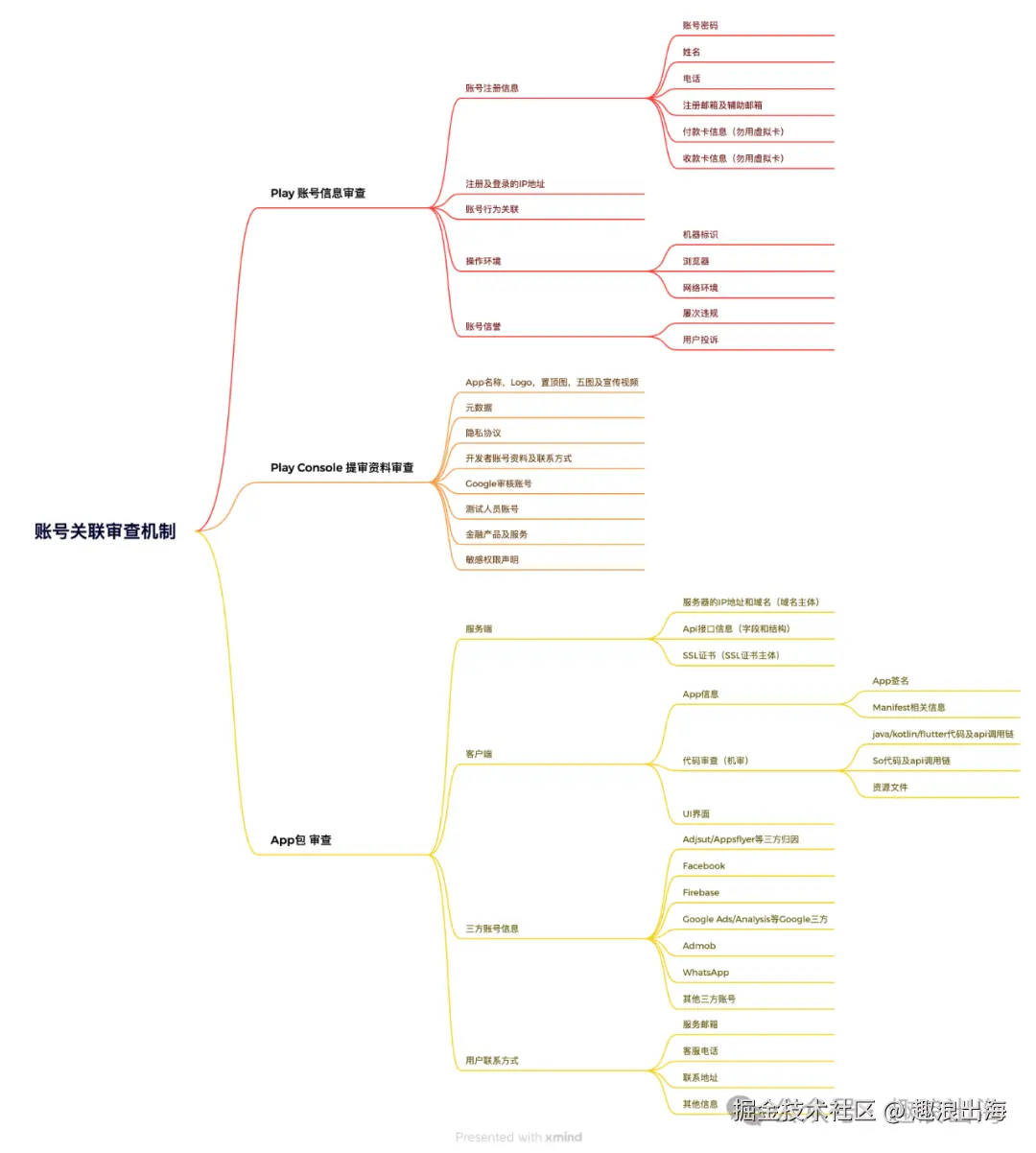 除账号信息导致的关联外,App包信息导致的关联也是一个需要重视的点。Google Play对于App包的审查,我们分服务端,客户端,三方账号信息及其他信息四方面来分析。