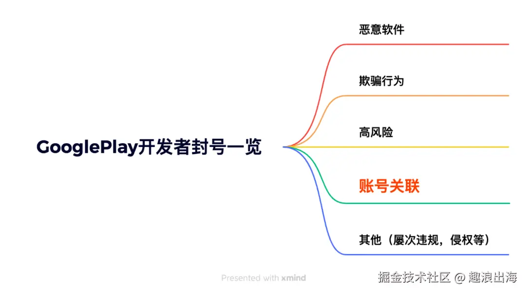 作为出海公司,Google Play开发者账号的封禁大概是大家最不想遇到的问题之一,盖因账号一旦封禁便意味着大概率无法恢复了。常见的封号原因有以下几种,其中以规则不透明的账号关联居首。