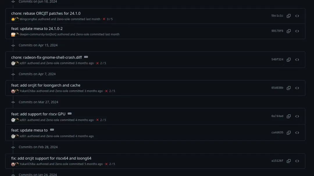 在 mesa 提交 MR 的这位 ID 称作 @YukariChiba 的开发者还有另外的身份:deepin 开源社区的研发工程师,deepin-ports SIG 开发者,deepin RISC-V port 的维护者之一。