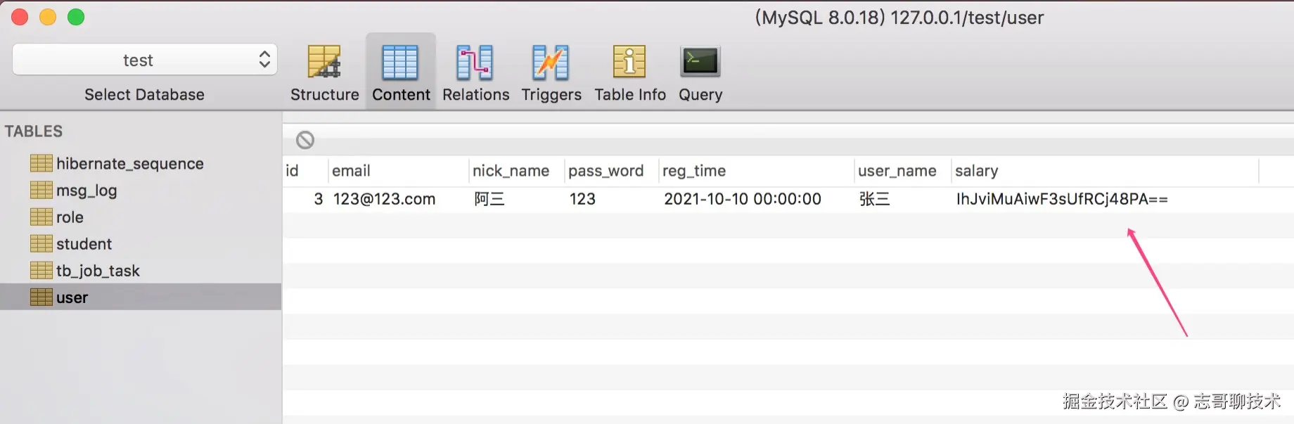 其中有几个的配置信息比较重要,spring.shardingsphere.encrypt.tables是指要脱敏的表,user是表名,salary表示user表中的真实列,其中plainColumn指的是明文列,cipherColumn指的是脱敏列,如果是新工程,只需要配置脱敏列即可!