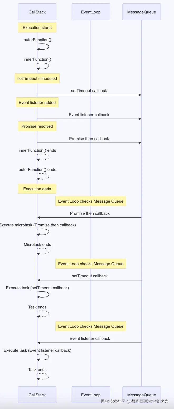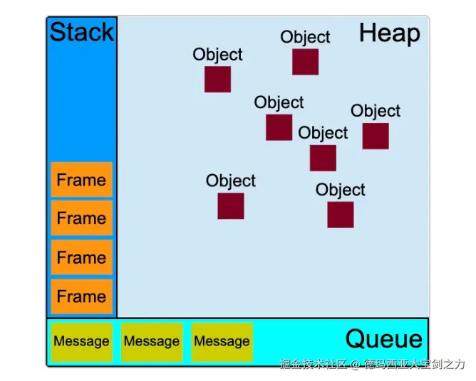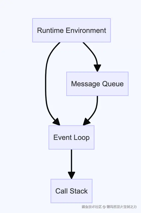 JavaScript 的运行时环境(如浏览器或 Node.js)负责维护消息队列和执行事件循环。消息队列由运行时环境中的一个或多个线程维护,但执行事件循环的线程是单独的 JavaScript 线程。
