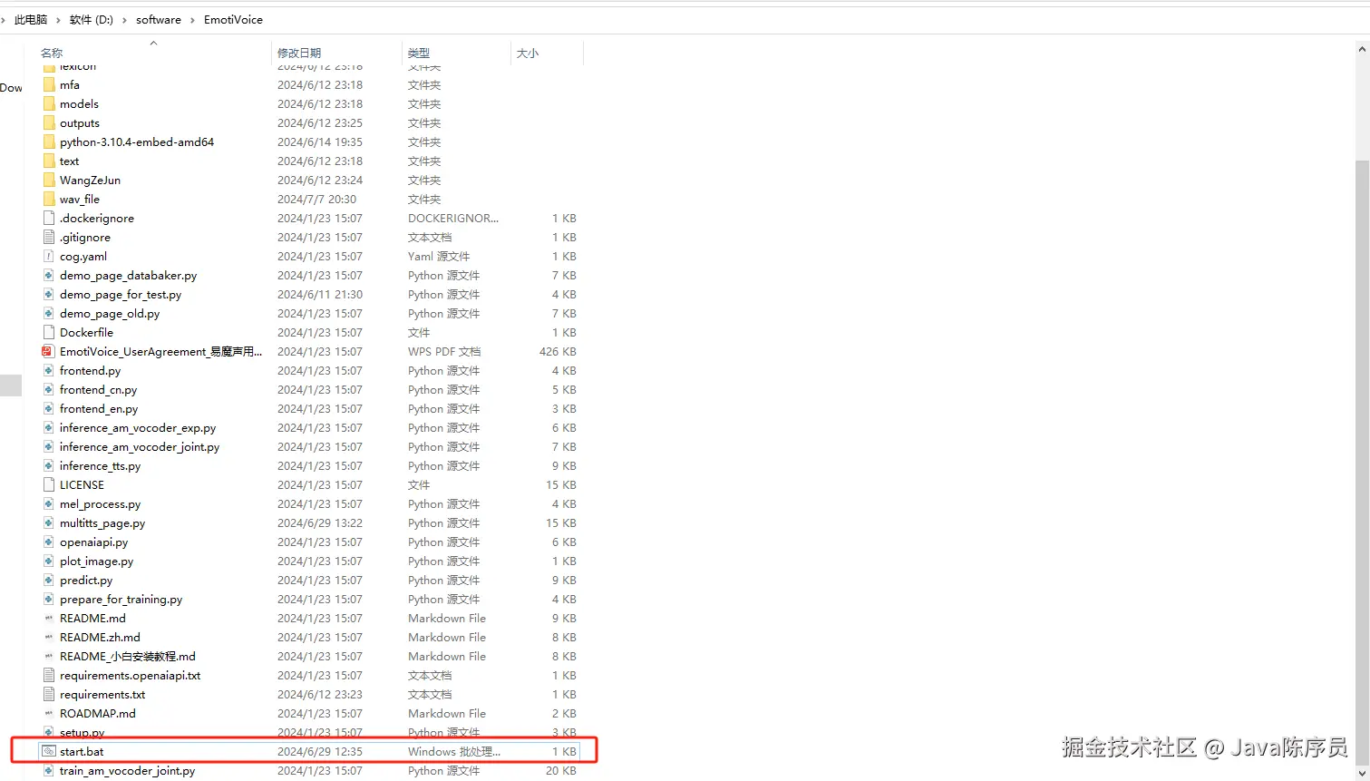 EmotiVoice 的使用方法十分简单,在 Windows 环境下,解压软件压缩包后,双击运行 start.bat 即可启动。