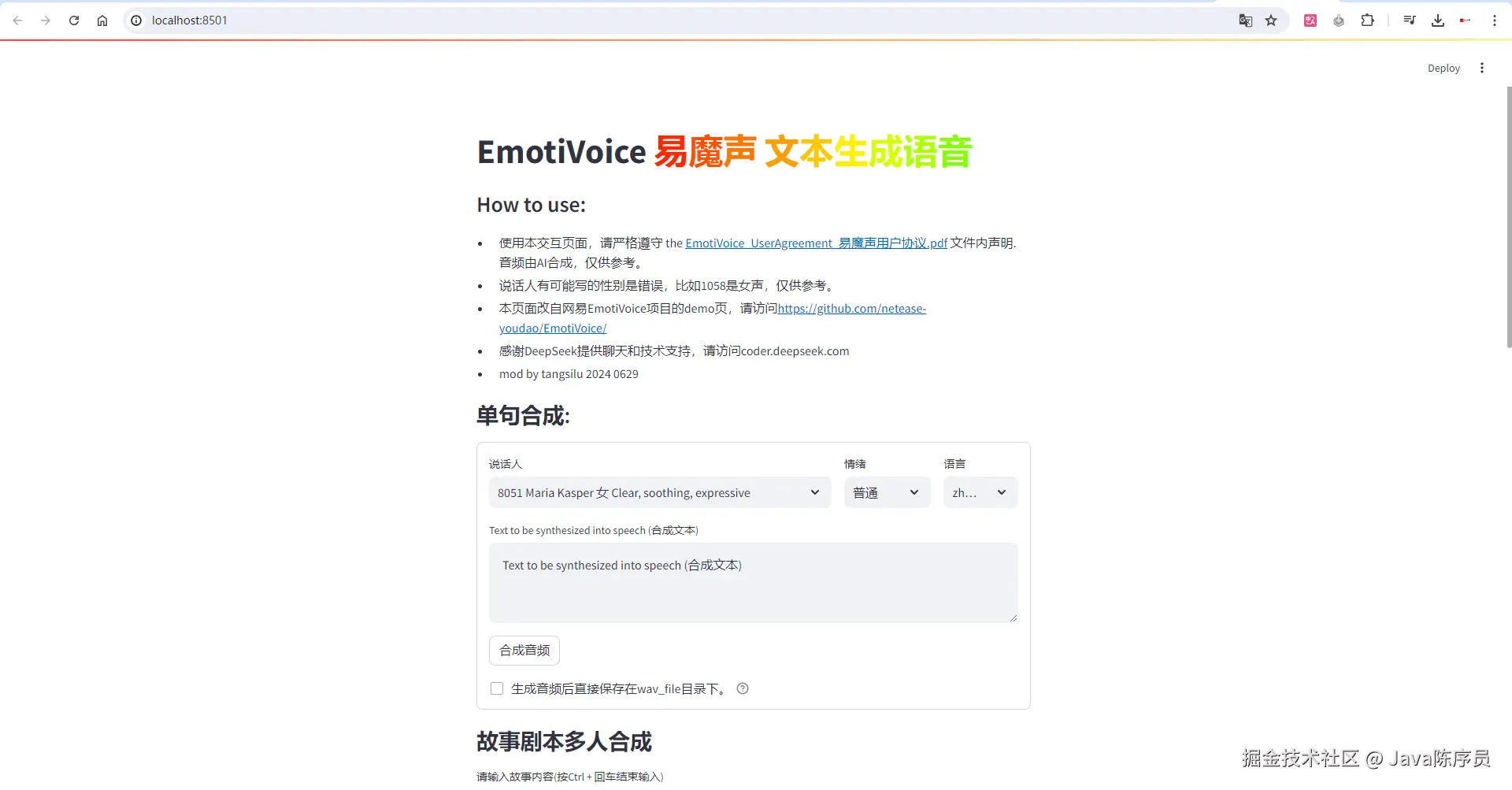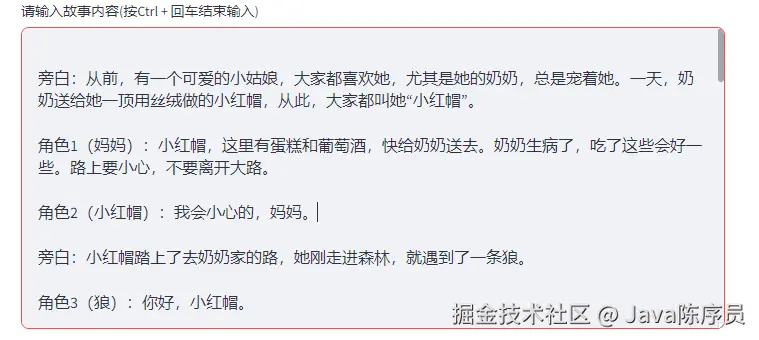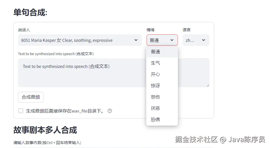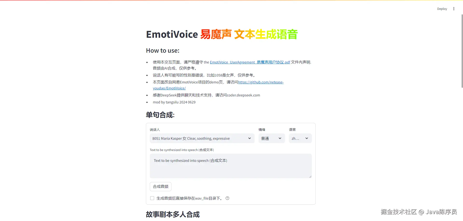 EmotiVoice 除了提供单句合成,还提供了故事剧本多人合成的功能。