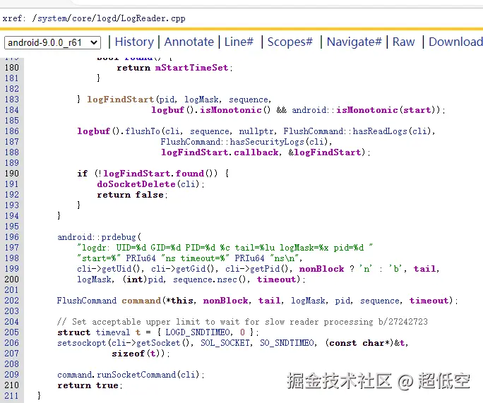 logcat 最终打开 /dev/socket/logdr,并通过 socket 传输数据进行处理。