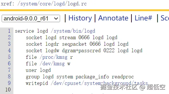 logd的 UID 设置为logd,GID 设置为logd、system、package_info和readproc -