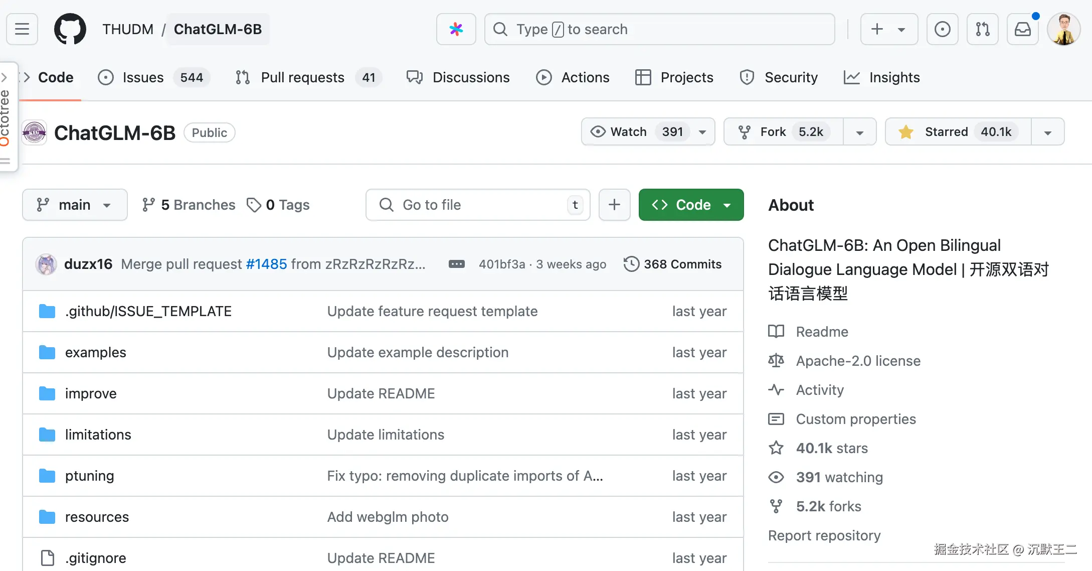 另外,我需要提一句的是,智谱 AI 也非常注重开源的力量,ChatGLM-6B 于 2023年3月14日开源,目前在GitHub上收获了 40k+ star。