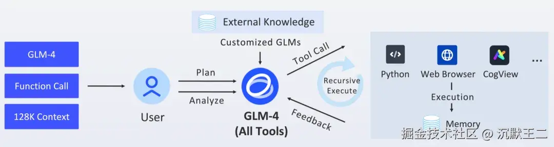 AllTools API 也是智谱 AI 最新推出的面向开发者的 API 服务,集成了调用工具的能力,并且能够自主使用多种工具组合和多轮对话来提供大模型服务。