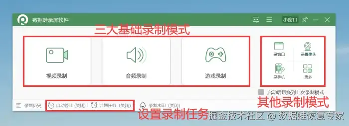 如果您需要经常使用到电脑视频录制工具,且想要多种录制模式地进行录制,请不要局限于电脑自带的录屏工具,可以考虑使用专业的录屏软件——数 据 蛙录屏软件。