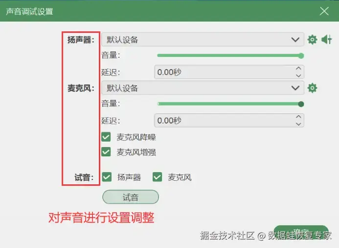 - 支持麦克风增强、降噪;试音测试: 在录制视频时可以对麦克风进行增强和降噪,减少噪音的干扰,还能在录制前进行试音测试,确保声音的清晰度。