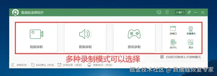使用电脑自带的录屏工具录屏会存在不能录制桌面、录制的视频声音与画面不够清晰的问题。想要轻松录制桌面上的任意内容,并且能够录制出声画同步、画质清晰的视频,可以使用专业的电脑录屏软件。电脑录屏软件哪个好用?首先推荐您使用数据蛙录屏软件。该软件有以下几大优点: