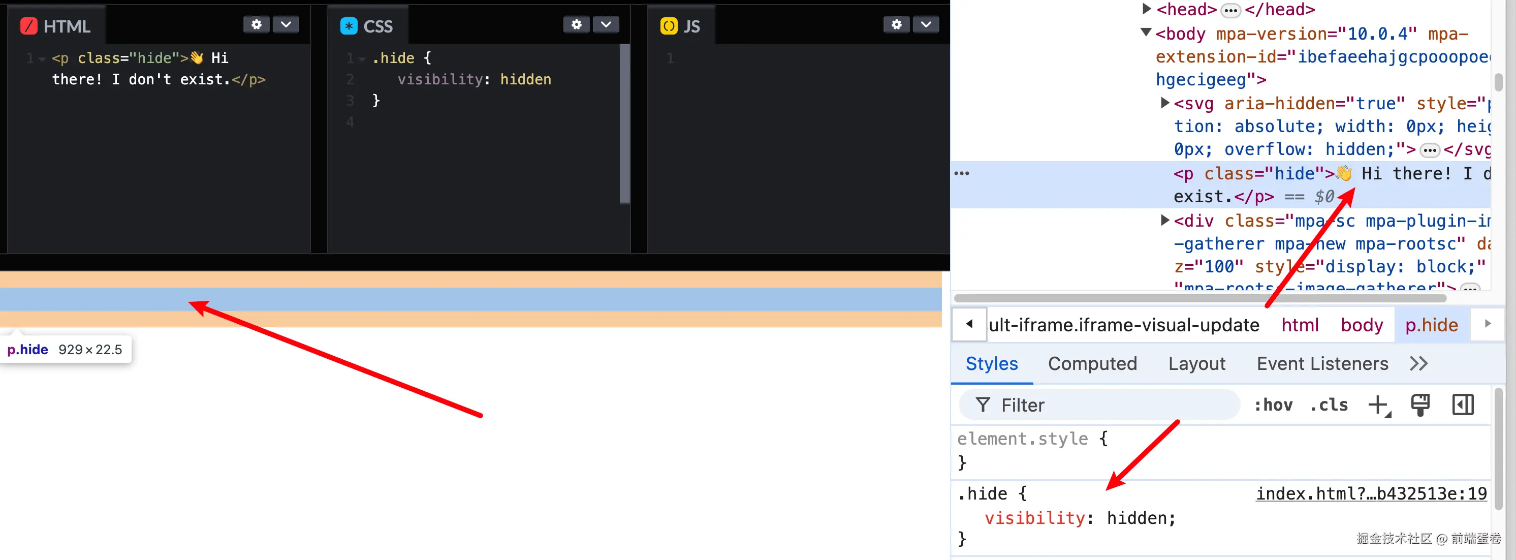 作为经常用来隐藏元素的 css 属性,display: none 相信大家并不陌生,使用了 display: none 会直接将元素从文档树中隐藏掉。