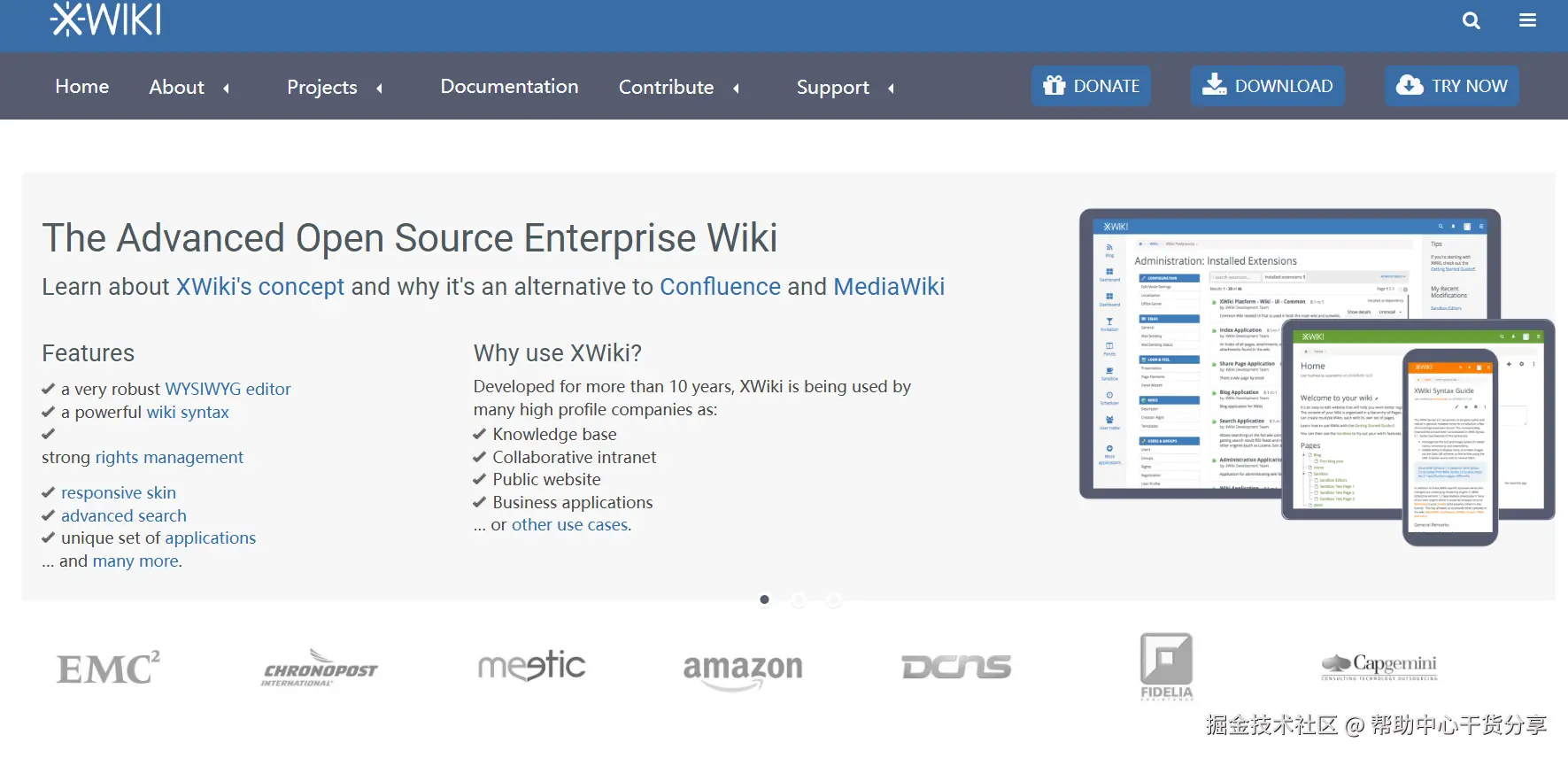 XWiki是一个基于Java的开源Wiki平台,支持复杂的文档结构和版本控制。它提供了丰富的API和插件系统,方便开发者进行二次开发和集成其他系统。