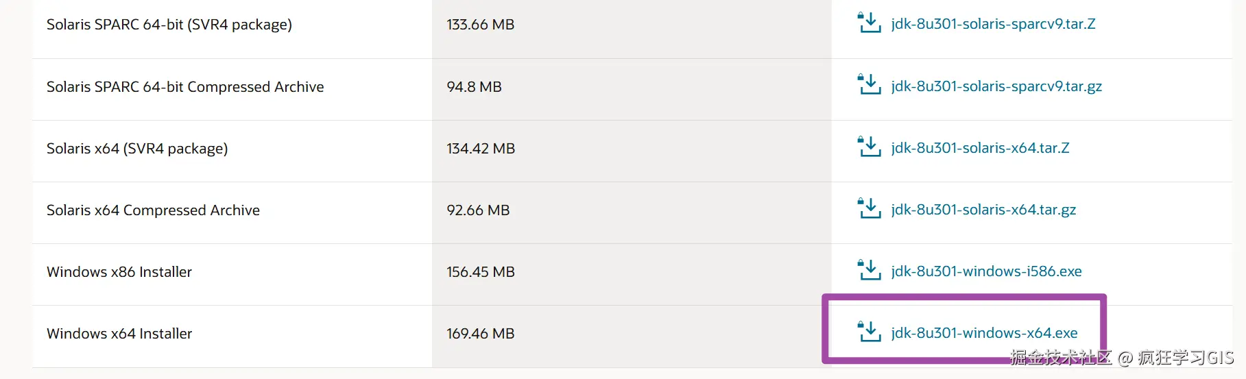 首先,我们进入JDK的官方下载网站,准备下载JDK。其中,我们需要首先确定自己需要下载的JDK版本,并随后开始下载——例如,假如需要最新版本的JDK,因为我们这里介绍的是Windows电脑中的配置方法,那么就点击下图紫色框所示版本右侧的下载链接即可。