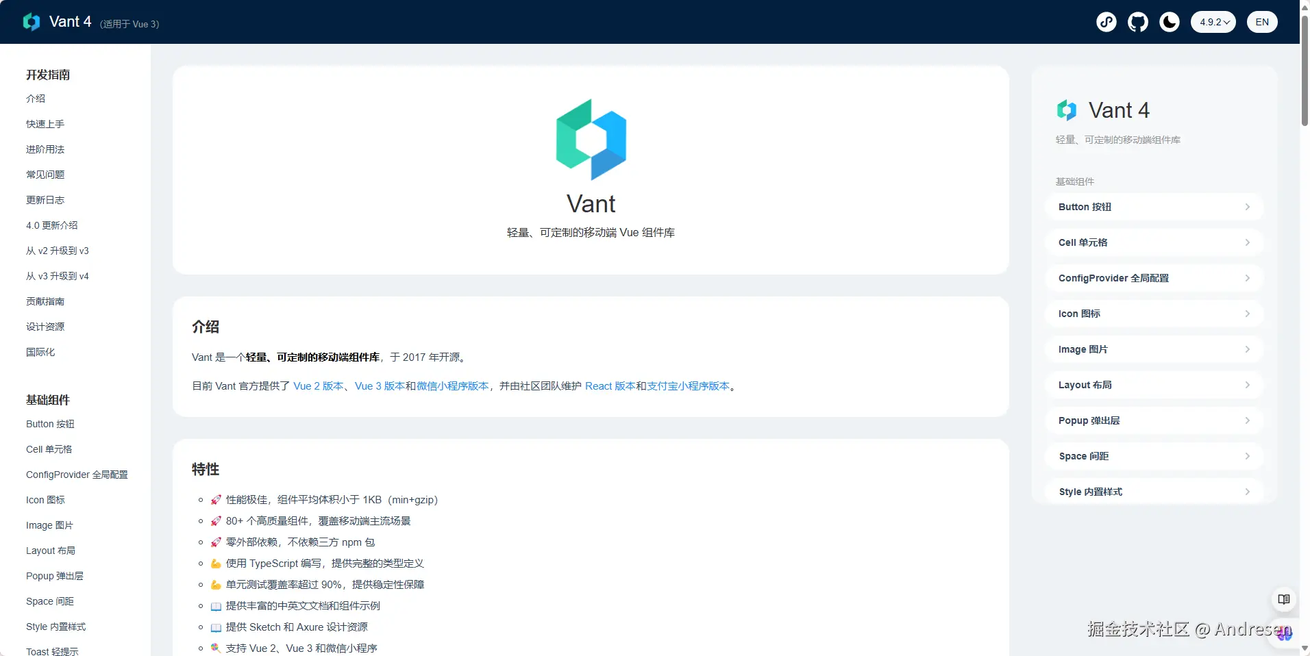 目前 Vant 官方提供了 Vue 2 版本、Vue 3 版本和微信小程序版本,并由社区团队维护 React 版本和支付宝小程序版本。