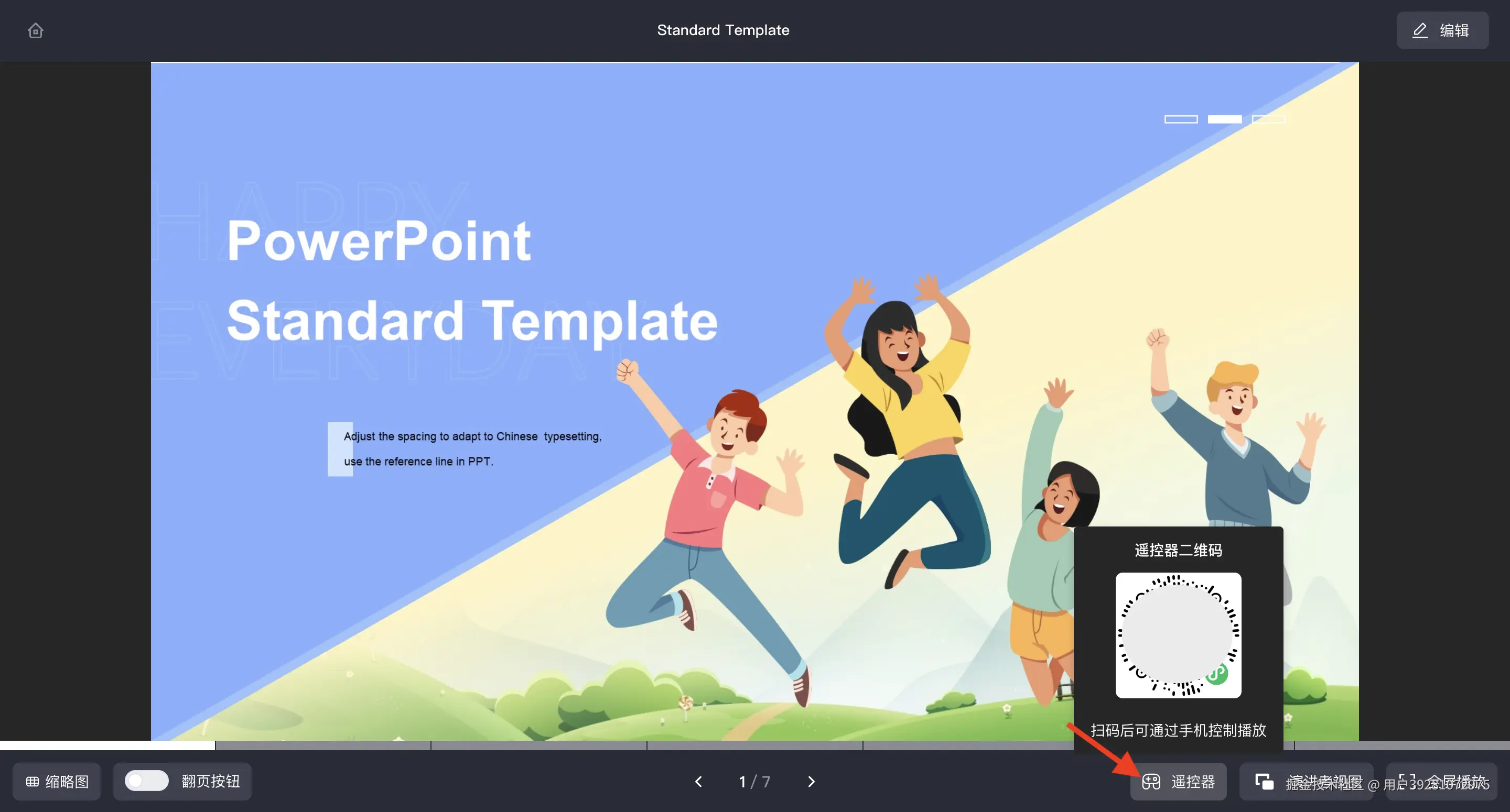 使用彩漩 PPT 手机遥控器功能,不需要在手机上安装任何 APP,也不要求手机和电脑处于同一网络。只需轻松扫一扫即可使用!而且安卓、iPhone 均适用!