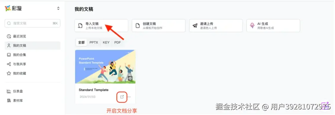 Step 1. 登录彩漩 PPT 并将 PPT 上传