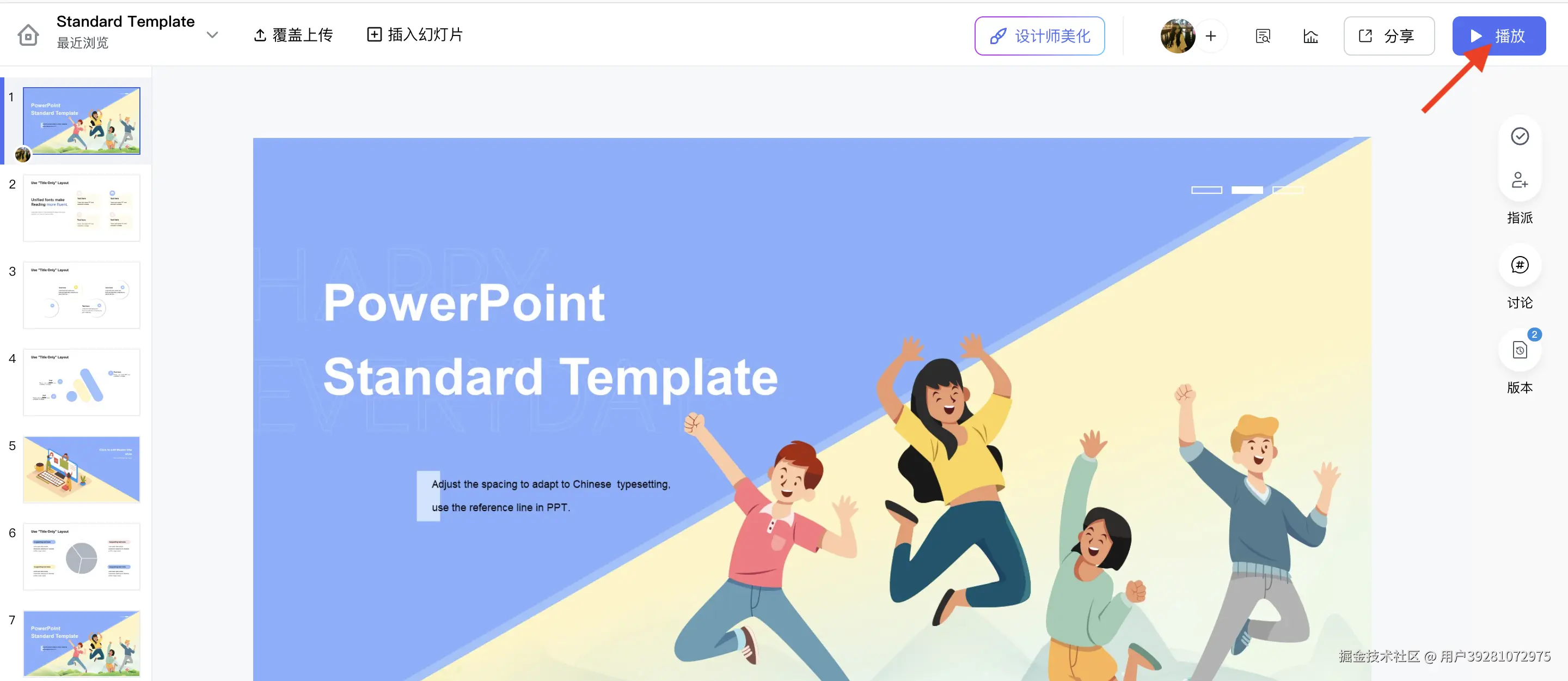 Step 2. 进入 PPT 详情页,点击右上角「播放」按钮,进入播放页