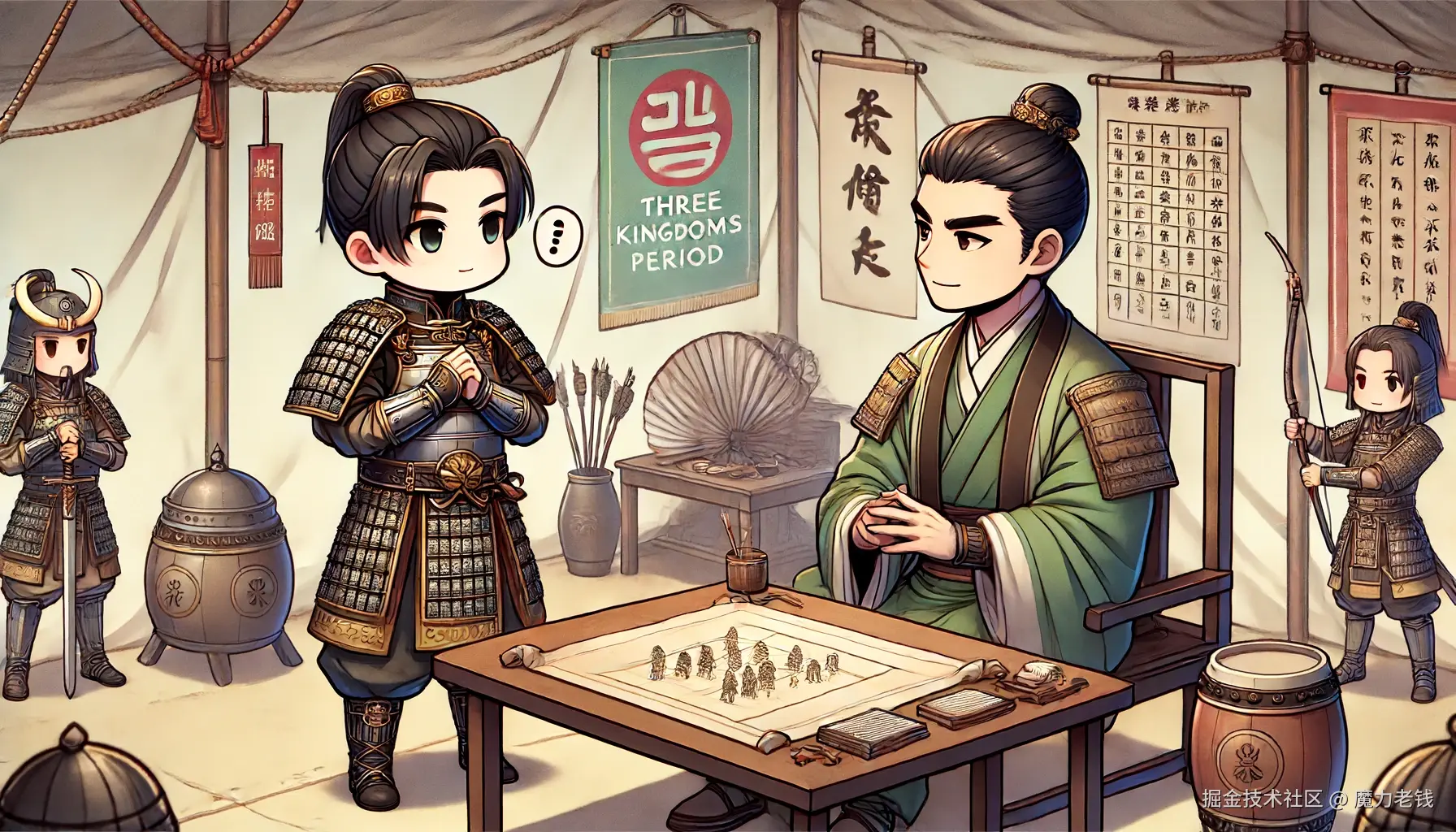 在一个满天星光的夜晚,阿木将军好奇心爆棚,决定找关羽请教怎么提升领导力。他们坐在温暖的营帐中,火堆噼啪作响。