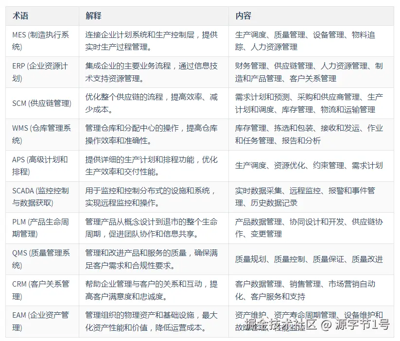 经常遇到很多系统,比如:MES、ERP、SCM、WMS、APS、SCADA、PLM、QMS、CRM、EAM,这些都是什么系统?有什么功能和作用?它们之间的关系是怎样的?