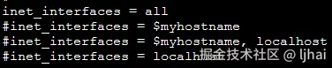 inet_interfaces = all前的#,在inet_interfaces = localhost前加上#。修改完成后如下图所示: