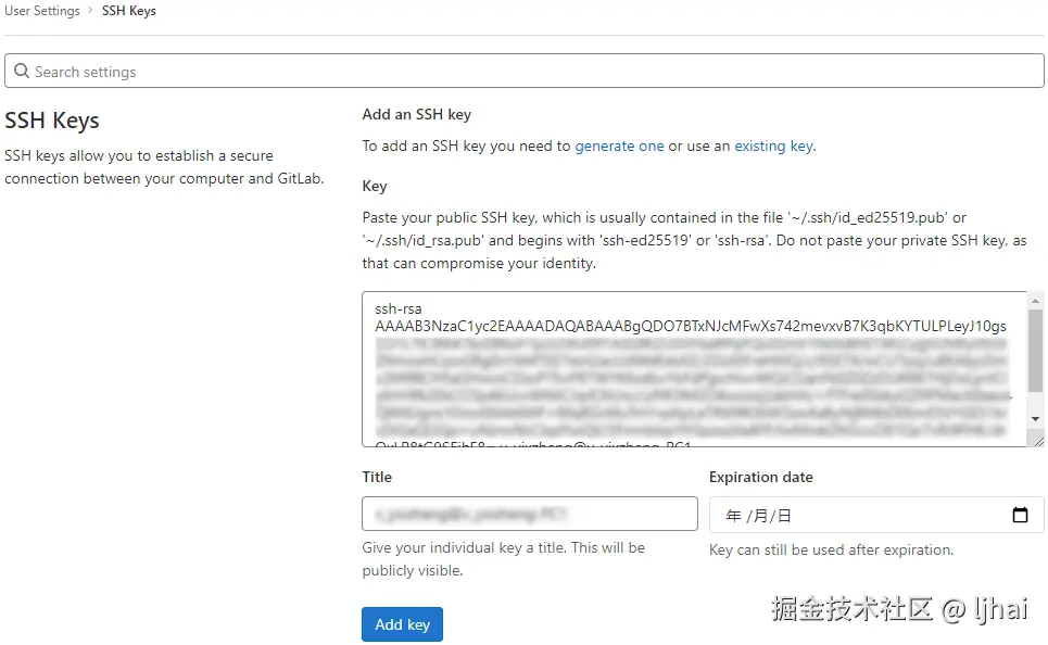 进入 SSH Keys 页面,按照以下步骤添加 SSH Key: