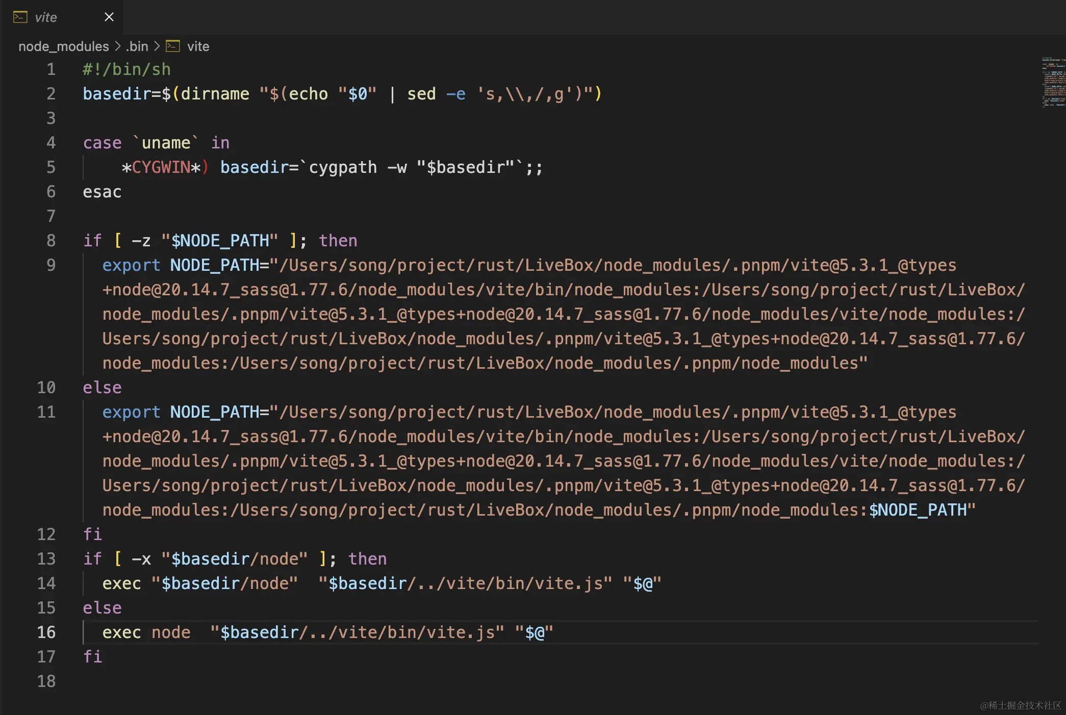 比如说在项目中安装了vite依赖,由于vite依赖库中定义了bin,在安装后就会在项目的node_modules/.bin目录中简历一个软连接到vite依赖中。