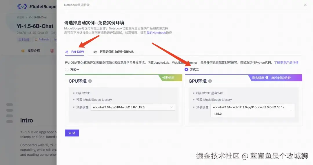 这里说明一下,阿里魔塔社区对于新用户提供了几十小时的免费GPU资源进行使用,正好可以来薅一波羊毛,学习一下大模型的微调。