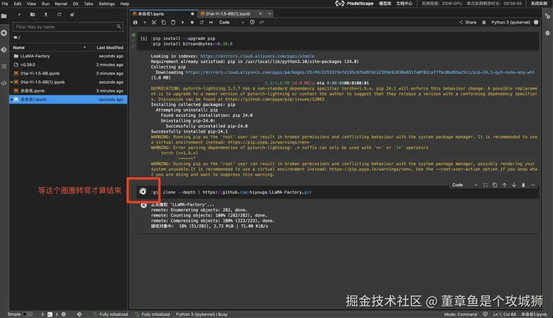 接下来,你通过下面的命令就可以在 notebook 里执行下载(在 terminal也一样,如果需要在terminal执行需要去掉前面的!)。