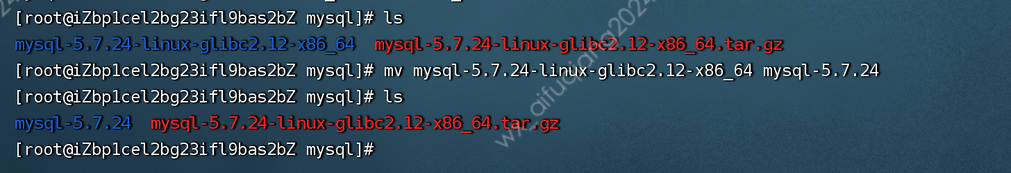 mv mysql-5.7.24-linux-glibc2.12-x86_64 mysql-5.7.24