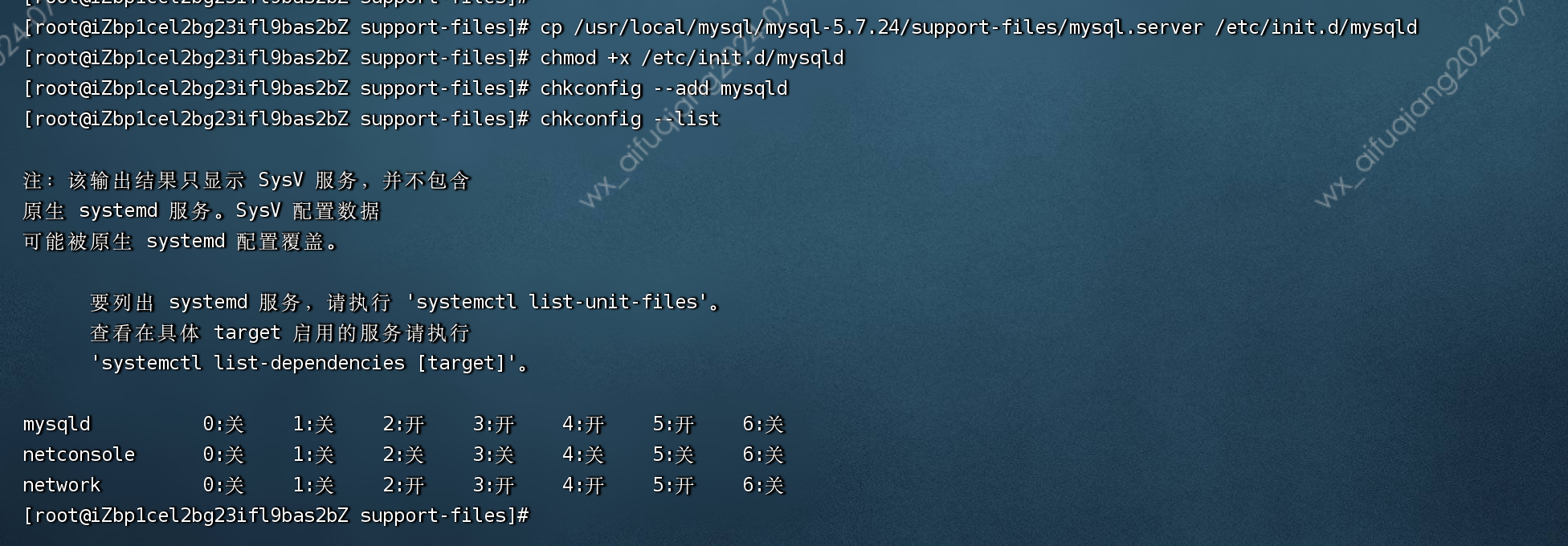 cp /usr/local/mysql/mysql-5.7.24/support-files/mysql.server /etc/init.d/mysqld