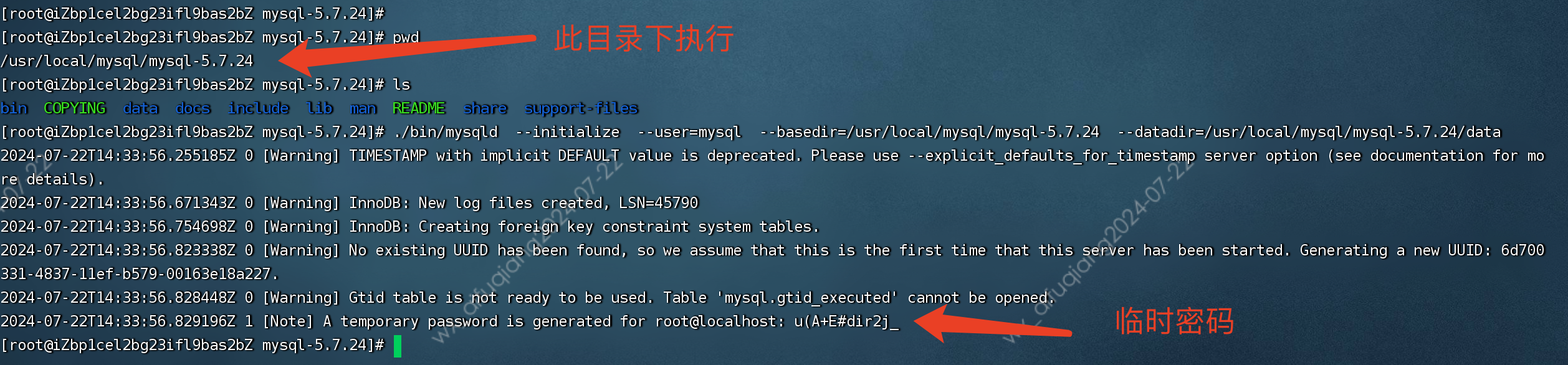 ./bin/mysqld --initialize --user=mysql --basedir=/usr/local/mysql/mysql-5.7.24 --datadir=/usr/local/mysql/mysql-5.7.24/data
