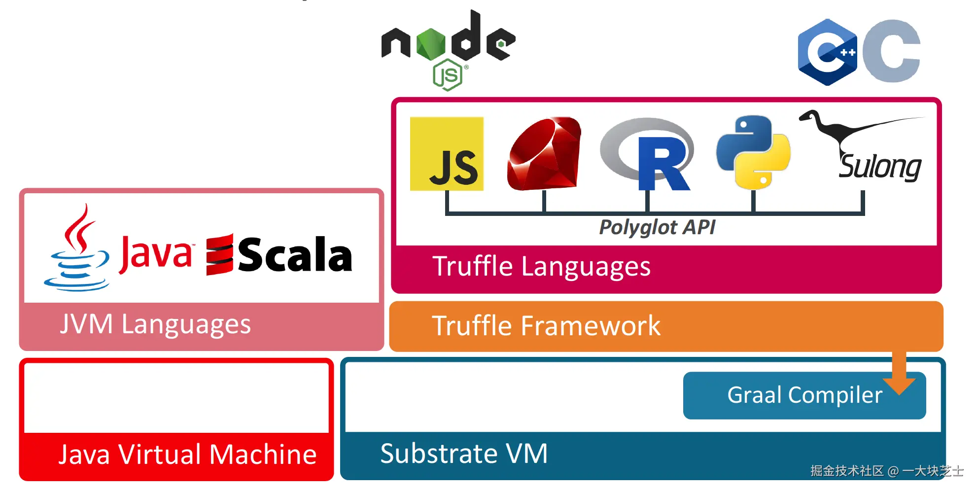 为了解决这一痛点,Oracle Labs 推出一款新的 JDK 产品 GraalVM JDK ,相比传统的 JDK 该产品内置 Java 静态编译工具和一款新的虚拟机,和传统的 JVM 不一样 GraalVM 是支持多语言进行混合编程的虚拟机,这也是它一大亮点。GraalVM 中的静态编译工具不仅是支持将 Java 编译为二进制可执行文件,还支持 JavaScript 和 Python 等其他语言的编译优化功能,本文只关注于 GraalVM 对 Java 程序进行 AOT(Ahead-Of-Time)编译的解决方案。