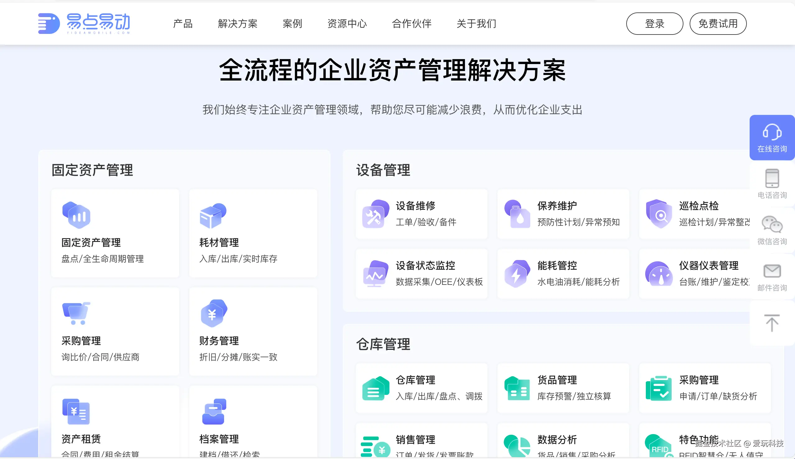 采用先进的云计算和物联网技术,为企业提供了全程数字化的固资管理解决方案。系统涵盖了资产追踪、分类、折旧计算、维护与维修管理、处置与报废等功能,支持从入库到清理处置的全流程自动化业务场景,有效解决传统手工管理方式中存在的诸多问题。