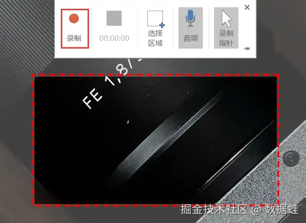 步骤2:在弹出的“屏幕录制”界面中,首先点击 “选择区域” 按钮,用鼠标拖动选择需要录制的画面大小。