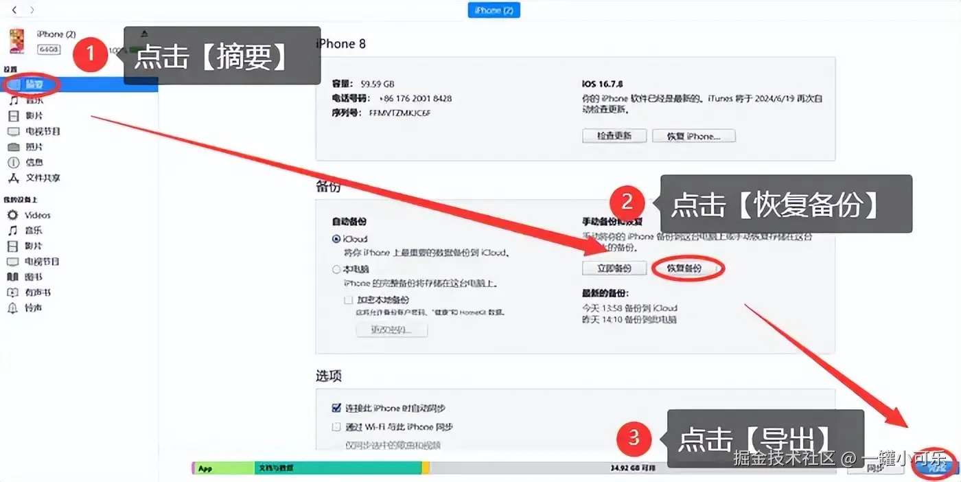 对于苹果手机用户而言,iTunes是必备的软件之一,它可以备份手机的所有数据,避免类似于不知道qq聊天记录怎么恢复的情况出现。但是这个功能需要在数据丢失之前就已经完成备份,不然的话,难以找到丢失的数据。下面是相关的操作步骤。