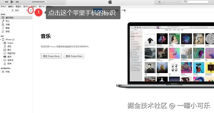 步骤2:点击iPhone的设备标志,进入备份界面。