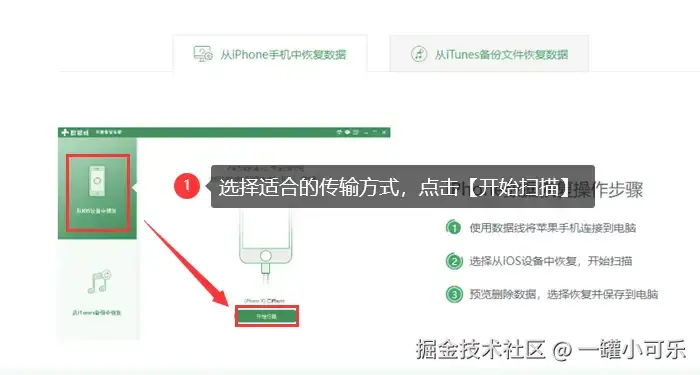 注意:需要用数据线连接苹果手机和电脑才能正式运行;电脑软件所扫描的数据仅用于本次运行,退出软件后将自动删除所有扫描的数据。
