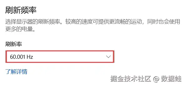 第二步:在 “刷新率” 下拉菜单中,选择一个较高的刷新率(如60Hz或更高),点击“应用”,然后确认更改。