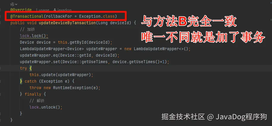 @Operation(summary = "方式C-更新设备-使用事务套锁(锁失效)")