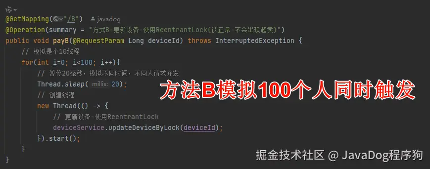 @Operation(summary = "方式B-更新设备-使用ReentrantLock(不会出现超卖)")