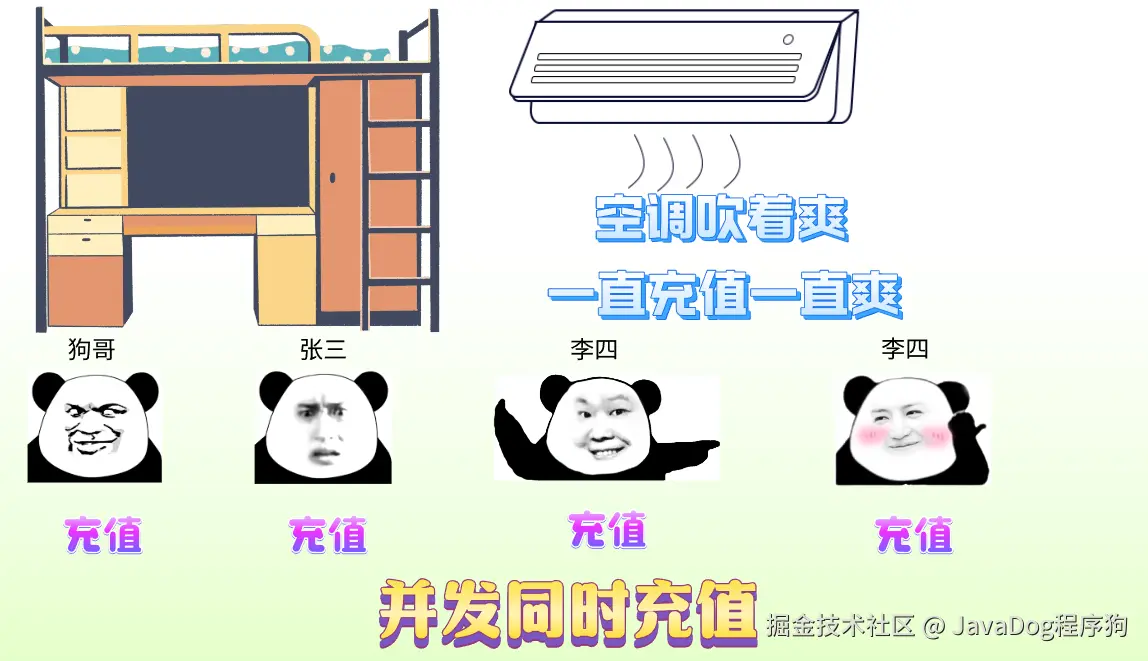 我们宿舍100个赤膊大汉,分分掏出自己手机同时进行空调使用时长充值......并发超卖问题由此而来