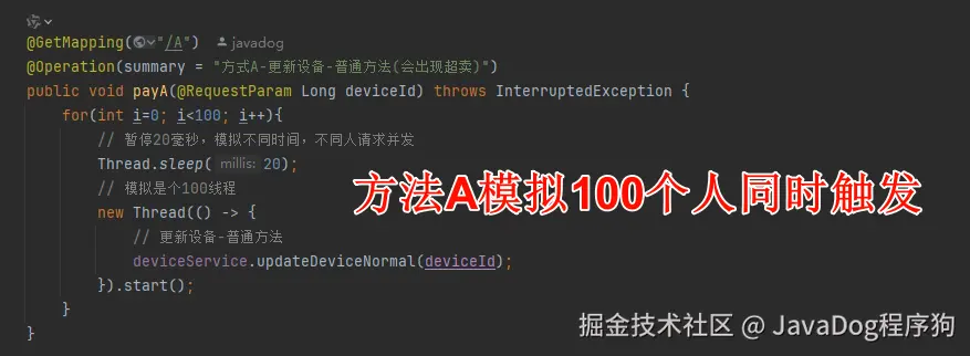 @Operation(summary = "方式A-更新设备-普通方法(会出现超卖)")
