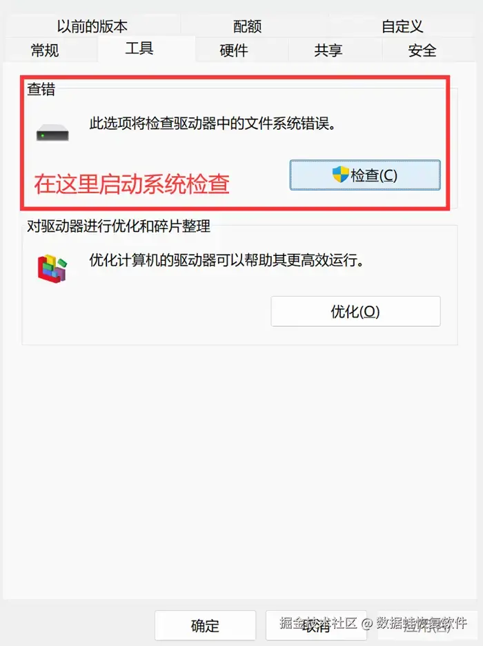 方法二:使用系统磁盘检查恢复