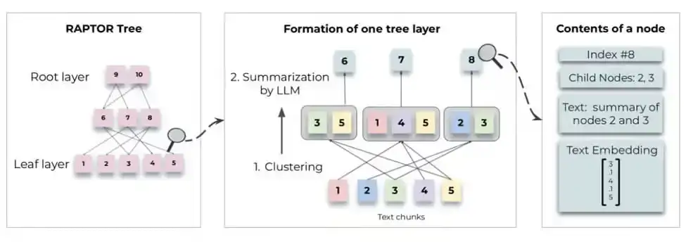 回答问题时,Raptor 会在这栋大楼中上下移动,根据需要从不同楼层收集信息。对于需要结合具体细节和宏观背景的复杂问题,它尤其有效。