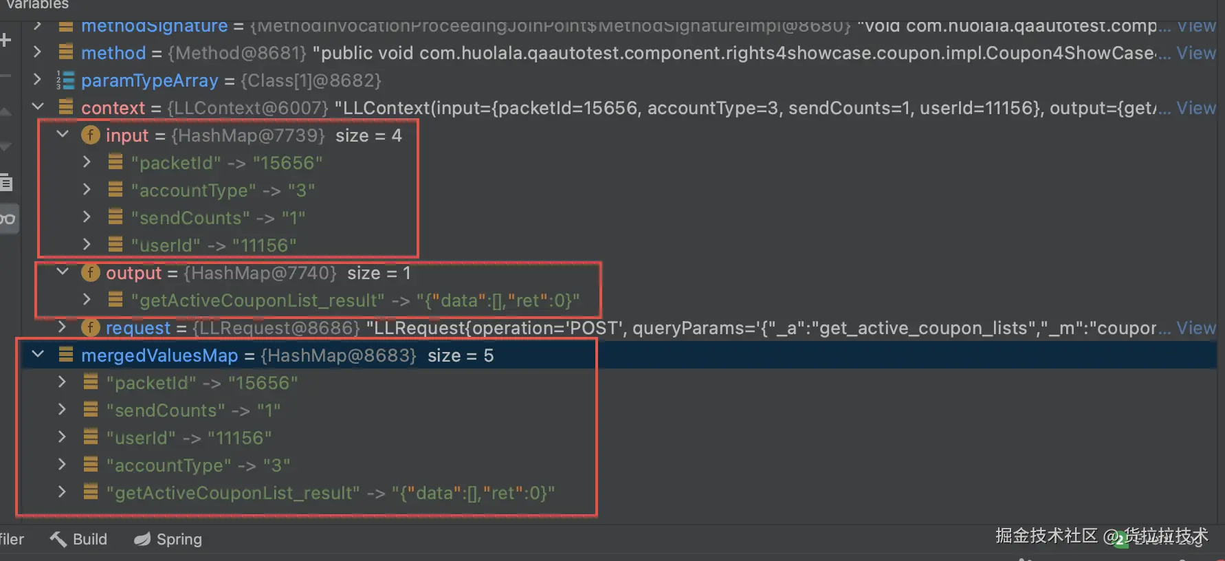 - 参数化,通过 @LLRequestSpec注解实现,实现过程会将 context 中 input 和 output 合并成一个 map,然后逐个替换用例 json 文件中的参数。简单来说就是 context 中 map(input+output)的 ${key} 都可用于 json 文件中关键字的替换