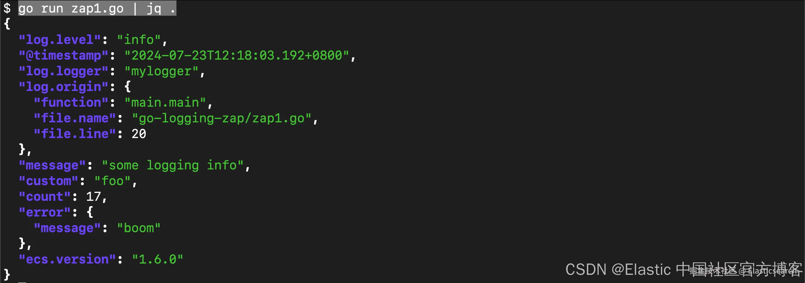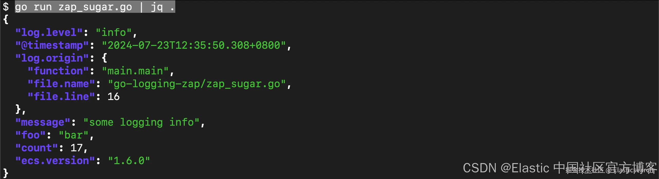 8. "go.elastic.co/ecszap"