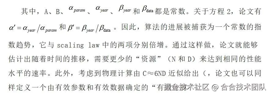 2.1模型定义 论文希望估计更新的语言模型能够比旧的模型更有效地达到一定性能水平的速率。论文通过拟合一个模型,满足两个关键需求: (1)该模型必须与之前关于神经scaling law的工作广泛一致,和(2)该模型应该允许分解对提高性能的主要贡献者,例如改进模型中的数据或自由参数的使用效率。