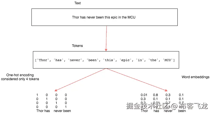有两种流行的方法可以将生成的标记映射到数字向量中,称为单热编码和词嵌入。让我们通过编写一个简单的 Python 程序来了解如何将标记转换为这些向量表示。我们还将讨论每种方法的各种优缺点。