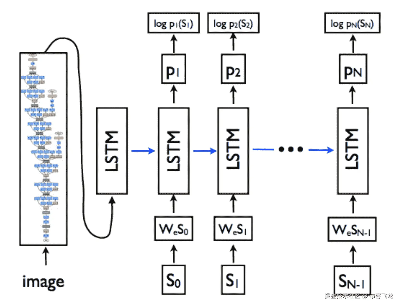 让我们更详细地看一看图像字幕系统中编码器和解码器架构的内部情况。