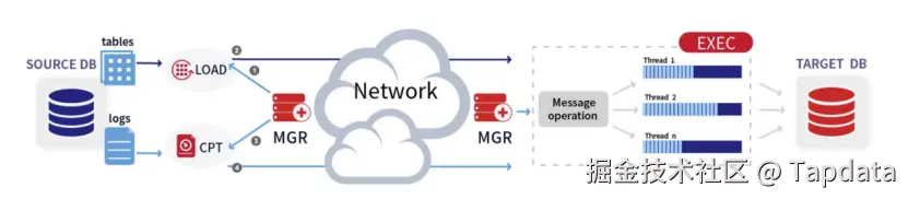 支持数据全量和增量实时同步,非介入式捕获增量对源端数据库几乎无影响。